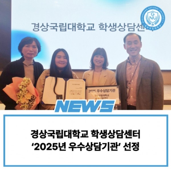 ㅇ 사진 설명: 경상국립대학교(GNU) 학생상담센터가 전국대학교학생상담센터협의회가 주관한 2025년 우수대학 상담기관 평가에서 상담운영부문 ‘우수상담기관’으로 선정됐다.