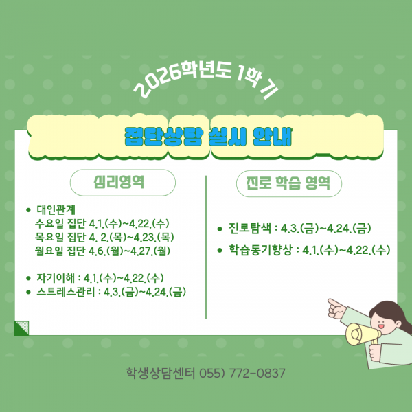 Korean | 2026학년도 1학기 집단상담 모집 안내