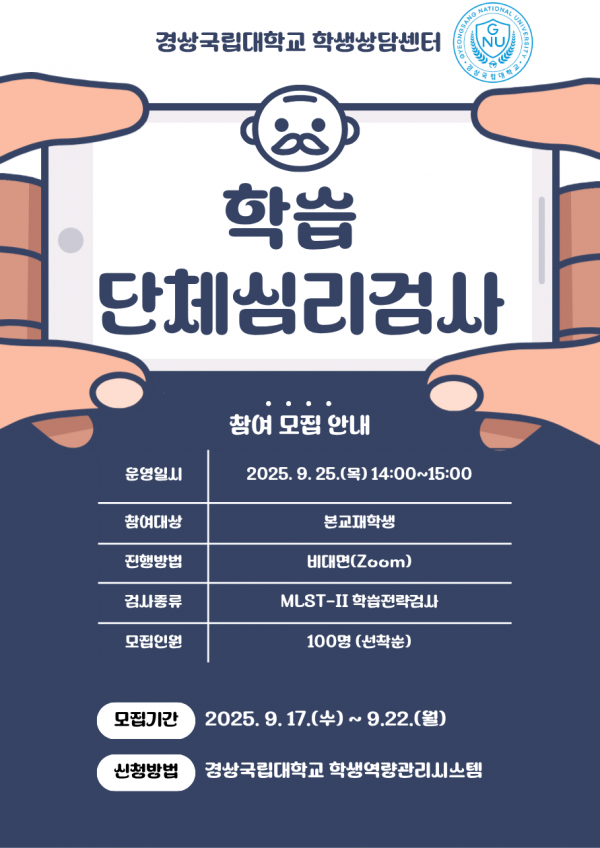 Korean | 2025년도 학습 단체심리검사 (3차) 페이지 정보 작성자 학생상담센터 작성일25-09-17 10:35 조회194 회 댓글0 건 관련링크 이전글 다음글 목록 본문 2025년도 학습 단체심리검사 (3차) 댓글목록 등록된 댓글이 없습니다. 이전글 다음글 목록