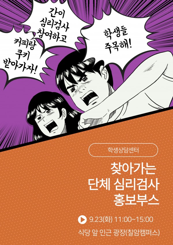 Korean | 찾아가는 단체심리검사 커피차 운영 안내 페이지 정보 작성자 학생상담센터 작성일25-09-19 18:02 조회189 회 댓글0 건 관련링크 이전글 다음글 목록 본문 칠암캠퍼스에서 찾아가는 단체심리검사 커피차 운영을 안내합니다. 댓글목록 등록된 댓글이 없습니다. 이전글 다음글 목록
